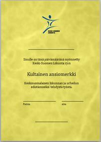 Keski-Suomen Liikunta ry:n hallitus myöntää ansiomerkkejä työstä keskisuomalaisen liikunnan ja urheilun kansalaistoiminnan ja vapaaehtoistoiminnan hyväksi.